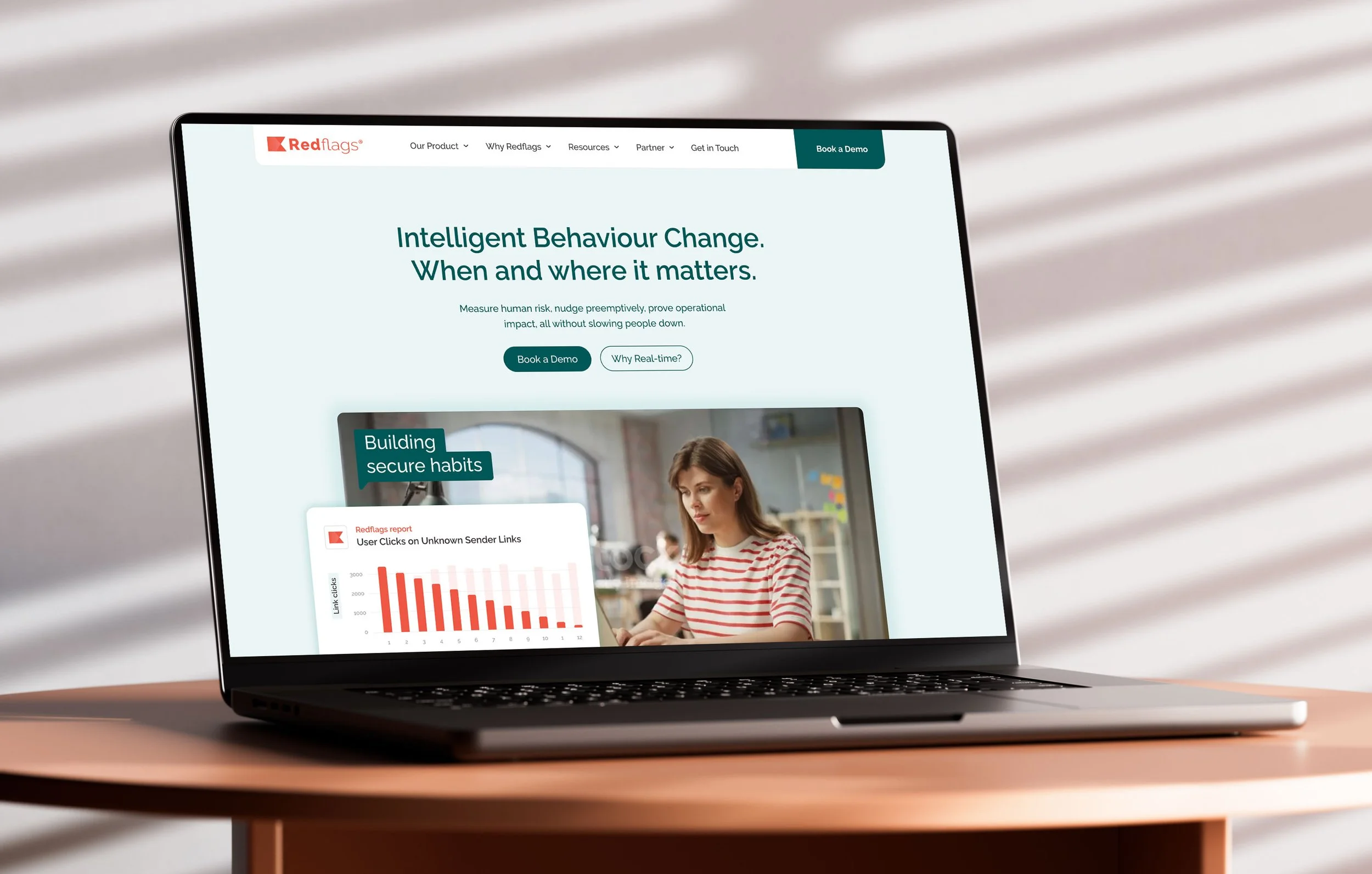 As Redflags evolved, the team needed to move beyond a technically strong security awareness product toward a brand that matched its core promise: intelligent behaviour change delivered in a way that feels modern, human and easy to understand.